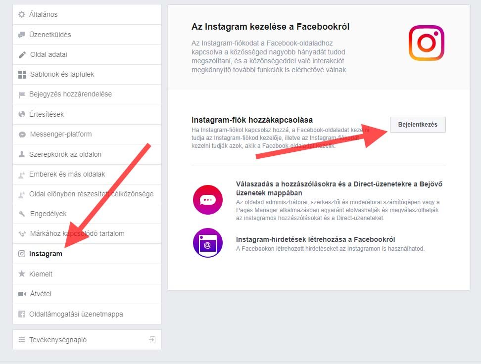 A legelső lépés összekötni Instagram fiókodat Facebook oldaladdal: